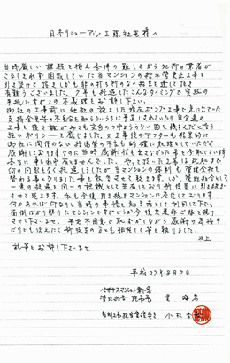 7年前に工事を行なったマンションの修繕委員長から感謝状が届きました