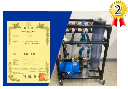 銅管を傷つけないで管内の汚れや不純物を除去する洗浄液(フラッシング液)と気体と液体を混合させる薬品用循環洗浄機の開発特許です。