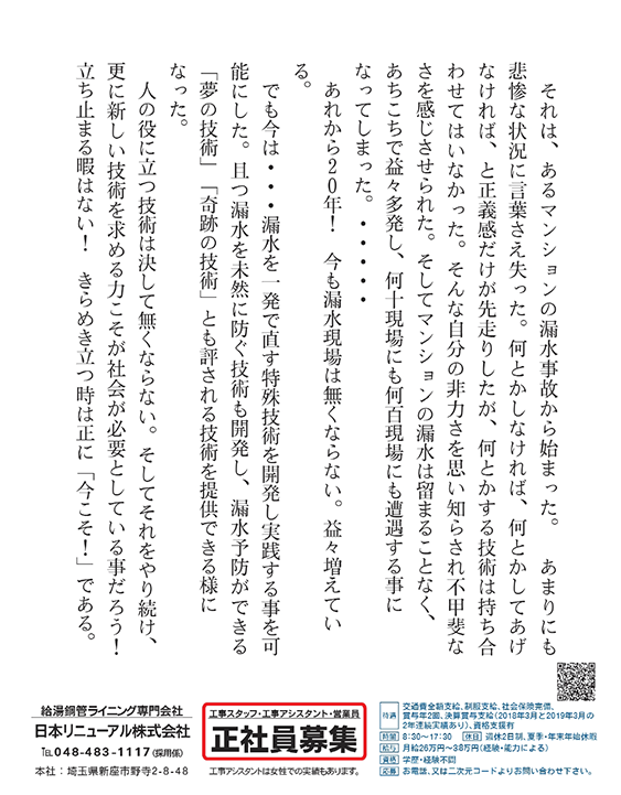 給湯銅管更生工事・リ・パイプブロック工法開発元!