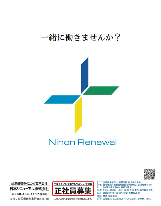 給湯銅管更生工事・リ・パイプブロック工法開発元!